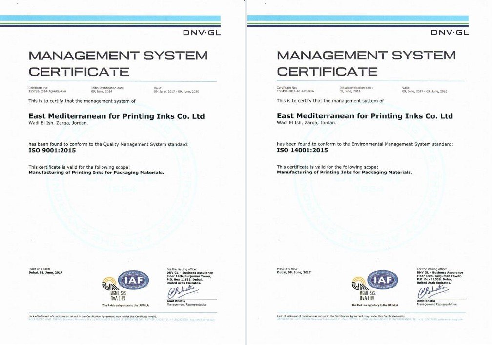 EMPI aims to provide the best types of printing inks in accordance with the international laws of ink industry worldwide to ensure that all products are compatible with Quality and Environment management providing the highest level of services and products by applying ISO 9001: 2015 and ISO 14001: among the following criteria: